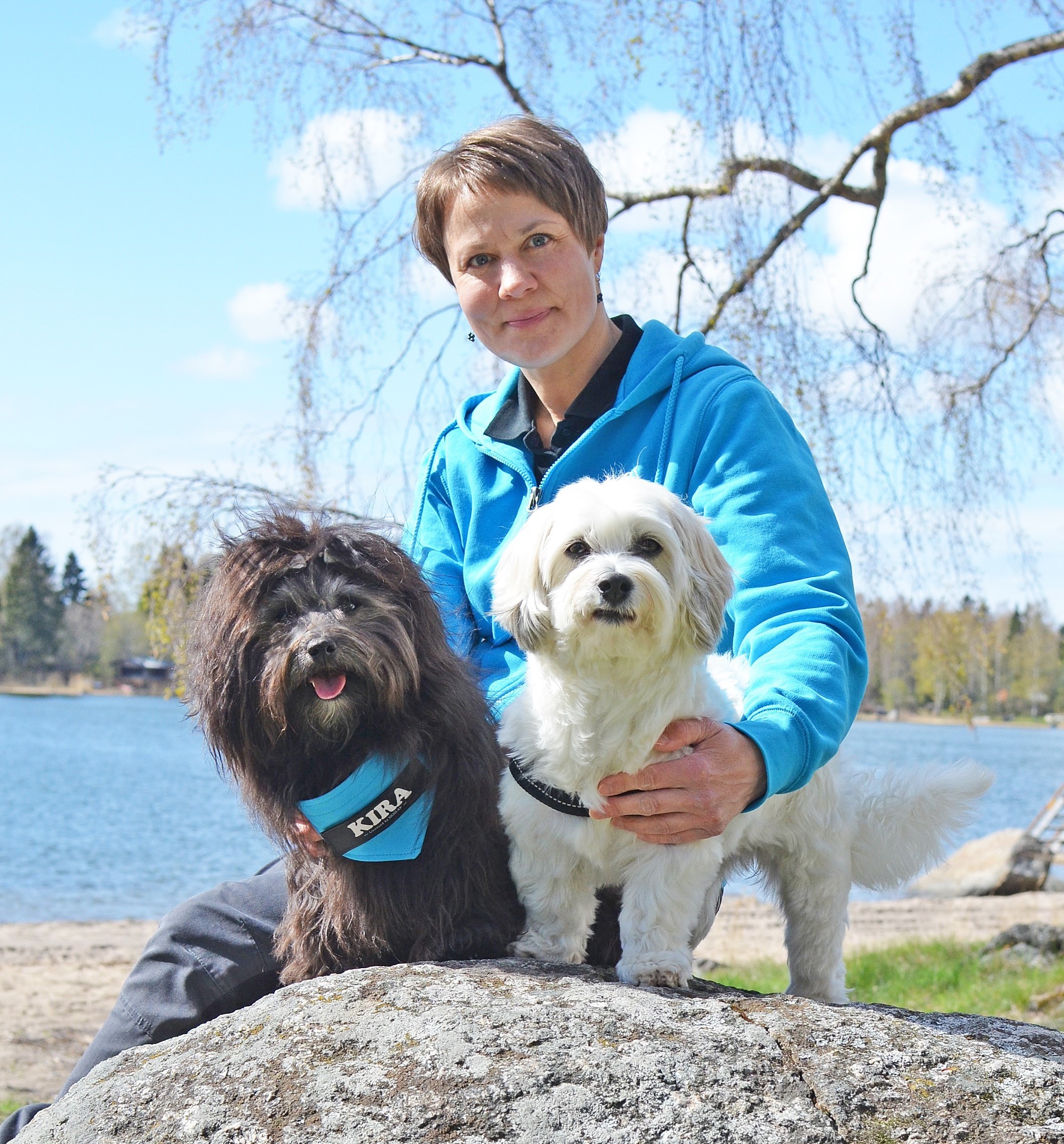 Monica työskentelee kouluttajana Suomen Terapiakoirakoulussa, jossa hän kouluttaa sosiaalisia työkoiratiimejä ja terapia- ja koulukoiratiimejä.